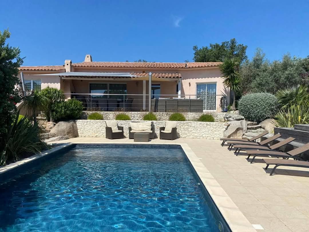 Villa (REF : Capicciola) Séjour, cuisine lave-vaisselle , four, micro-onde, grille-pain , cafetière , plaque de cuisson) qui donne sur la terrasse avec barbecu et la piscine, 4 chambres (lits doubles 160cm) + (TV dans une des chambres) dont 3 avec SDB 3 WC . Piscine (4x9) avec alarme et jacuzzi (7 places).