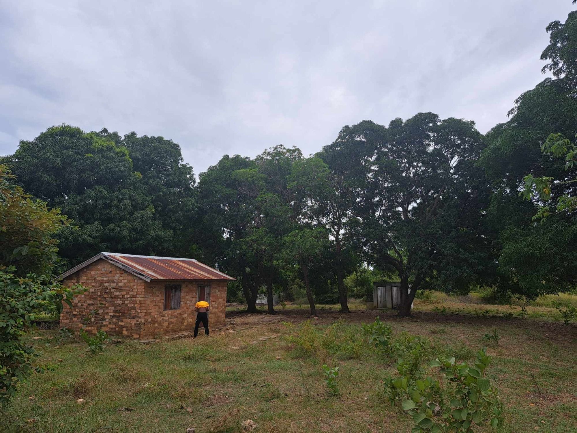 Un terrain de 3343m² situé sur la route d'Ambonio, en premier plan avec une maison de gardien en brique déjà.