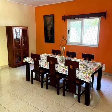 Située dans le quartier résidentiel d’Ambrondona, à proximité du Collège Français Françoise Dolto, cette villa se trouve à seulement 8 minutes en voiture du centre de Majunga. Elle bénéficie d’un accès goudronné et occupe un terrain de 1 975 m2 pour une surface habitable de 165 m2.