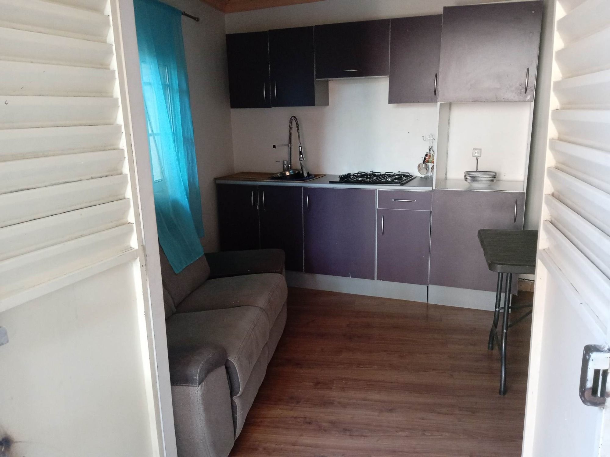 - Au RDC : salle de séjour (télé avec canal+) et cuisine équipée (gazinière, frigo, couvert pour 6 personnes) de 20m2 et une chambre indépendante de 20m2 aussi avec clim portable